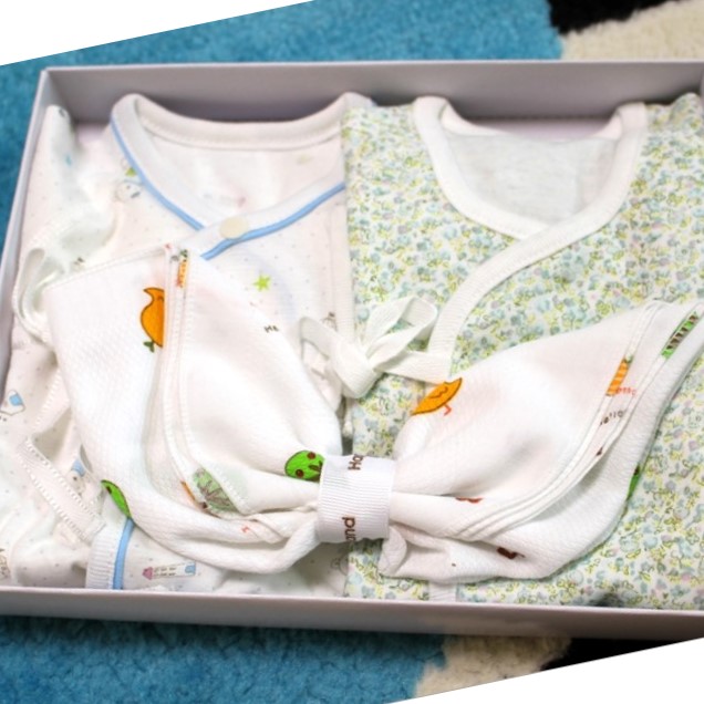 예쁜 배냇저고리 2벌과 서비스인 손수건이 함께 들어있었어요.